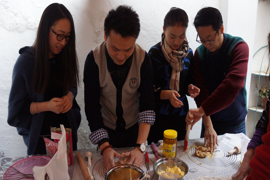 活動中,所有參與嘉賓分成了若干個圣誕小分隊,在主持人的引導下進行了饒有趣味的熱身小游戲。之后,大家進入了神秘的圣誕尋寶環節,兩人一組分頭在屋子里尋找制作圣誕姜餅所需的各種原材料,只有集齊了全部材料,才能進入下一步的制作環節。在大家的共同努力下,“藏身”于隱蔽角落的原材料一件件都被“逮”了出來。接著,大家便開動雙手,互相協作,經過化油、加粉、揉面、搟薄、壓模、烘烤等多道工序,伴隨著屋子里飄出的陣陣醇香,一塊塊形態各異、色香味俱全的圣誕姜餅終于新鮮出爐。咬上一口,脆在舌尖、甜在心里,為這個冬日的午后增添了幾分愛的暖意。