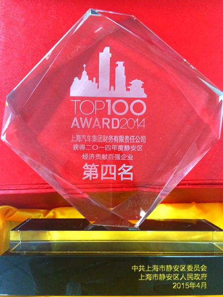 贊 上汽財務公司榮獲靜安區2014年度經濟貢獻百強企業第四名(圖)