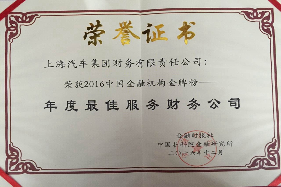上汽財務公司獲評“2016年度最佳服務財務公司”稱號~ (圖)